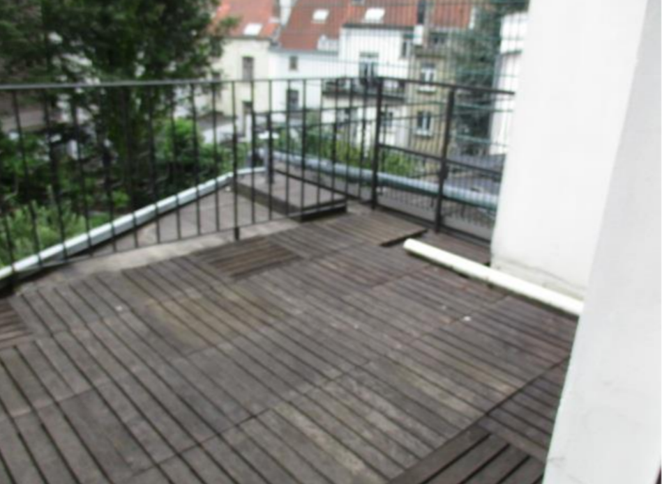 Sur le square Marguerite, dans maison de carractère, au 2e et dernier étage, appartement duplex ± 100 m², 2 Chambres, sejour 25 m², cuisine équipée AVEC accès terrasse SUD 10 m², 1 Salle de bains, 1 douche, buanderie, la situation à deux pas idéale de Schuman. Loyer: 950 € / mois + charges (communs, l' assurance et eau) 55 eur / mois. 2 de la prudence. Libre 1r juin